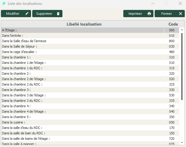 Dans le module "Bibliothèque technique" Menu Fichiers + Localisation, la colonne code sert à indiquer l'ordre d'apparition dans la notice (de 001 à 999, mais pensez à laisser de l'espace pour des insertions futures).