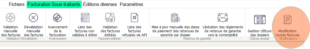 Il faut dans ce cas là aller dans Facturation sous-traitants > Modification toutes factures